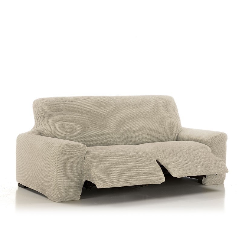 Housse de canapé de relaxation super élastique 3 places Glamour. Valable pour les canapés de relaxation mécanisés à 2 pieds, de série. Composée d'une seule pièce qui recouvre entièrement le canapé, s'adaptant aussi bien verticalement qu'horizontalement, grâce à son tissu super élastique.